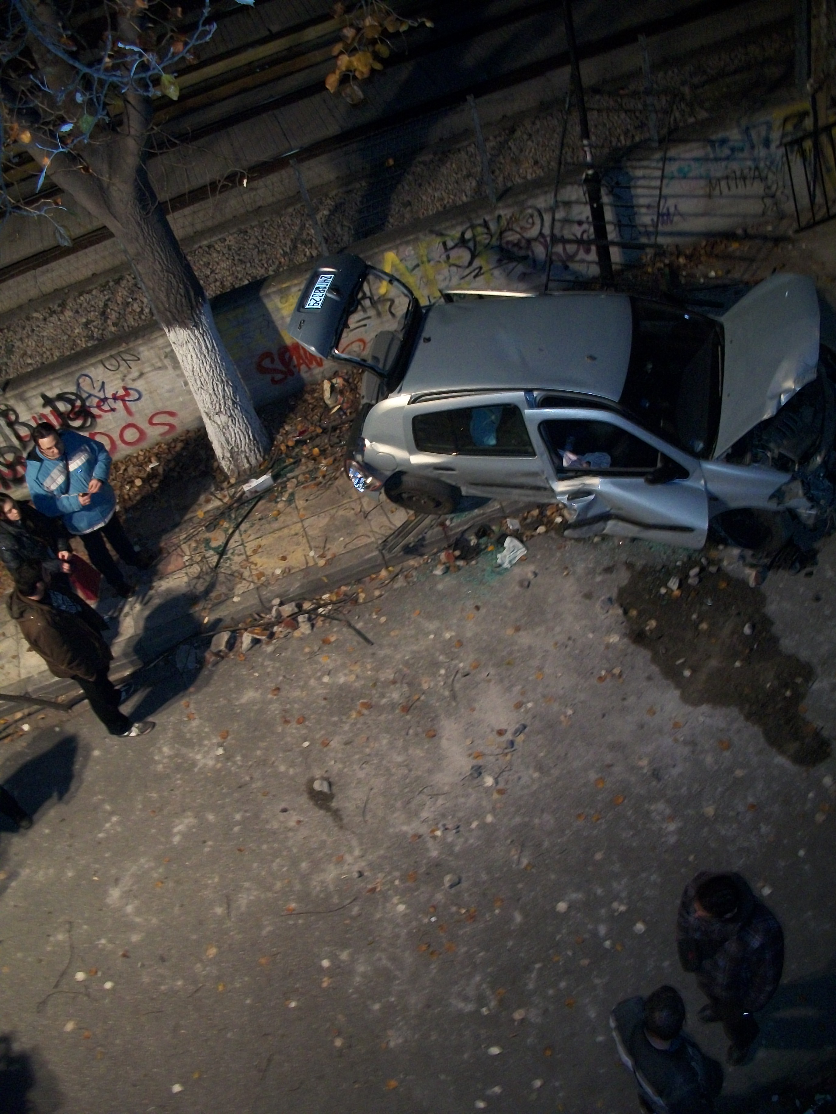 Το ευτύχημα ήταν ότι το αυτοκίνητο «προσγειώθηκε» λίγα μόλις μέτρα από τις γραμμές του ΗΣΑΠ. Σύμφωνα με αυτόπτες μάρτυρες ο οδηγός είχε αναπτύξει υπερβολική ταχύτητα.